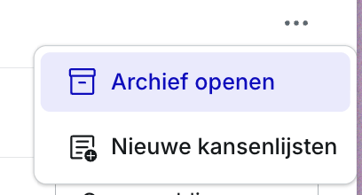 Op de pagina Nieuwe Kansen kun je rechtsboven op de drie puntjes klikken en kiezen voor Archief openen.